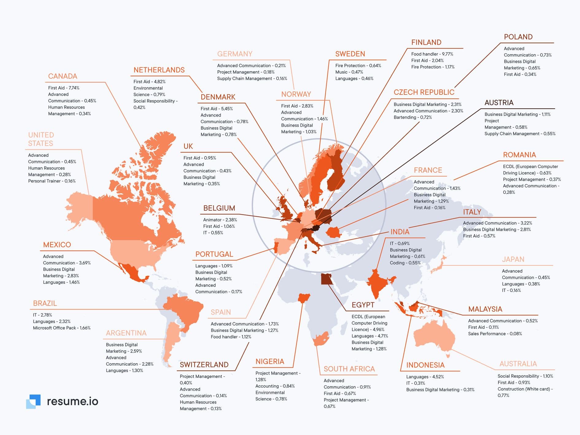 - Use the data from Resume.io’s analysis of almost 7 million resumes worldwide to gain a competitive advantage.