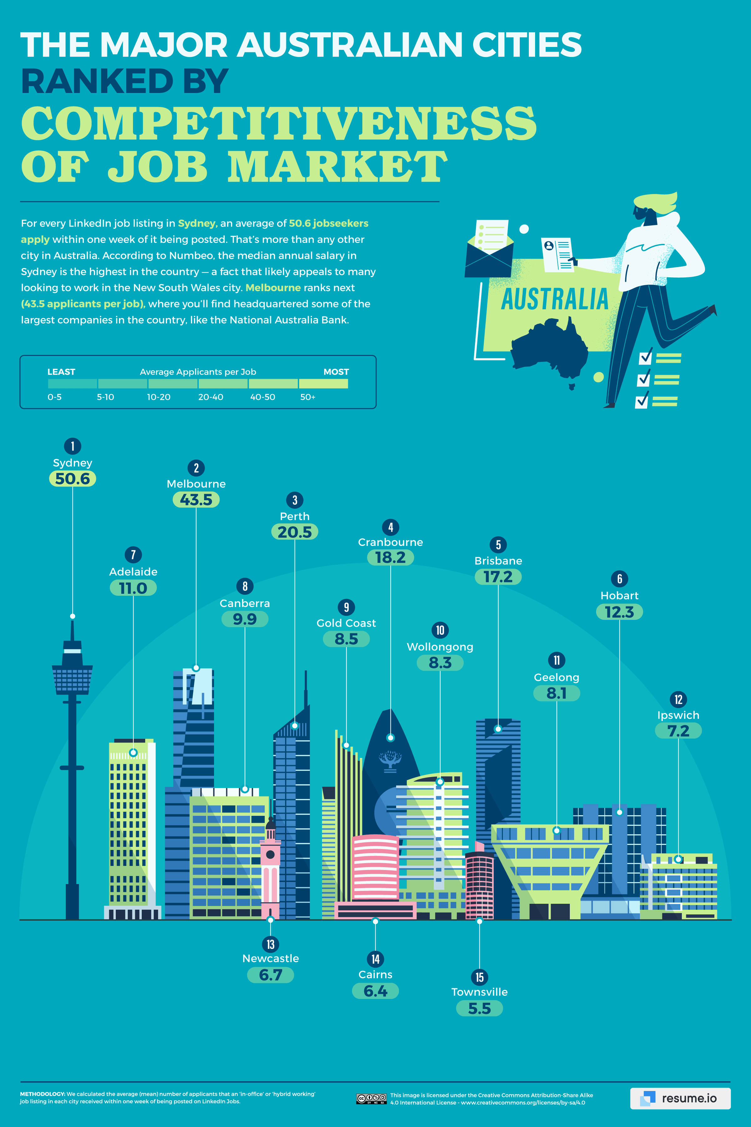 - Sydney’s (50.6 applicants) job market is more competitive than any other Australian city